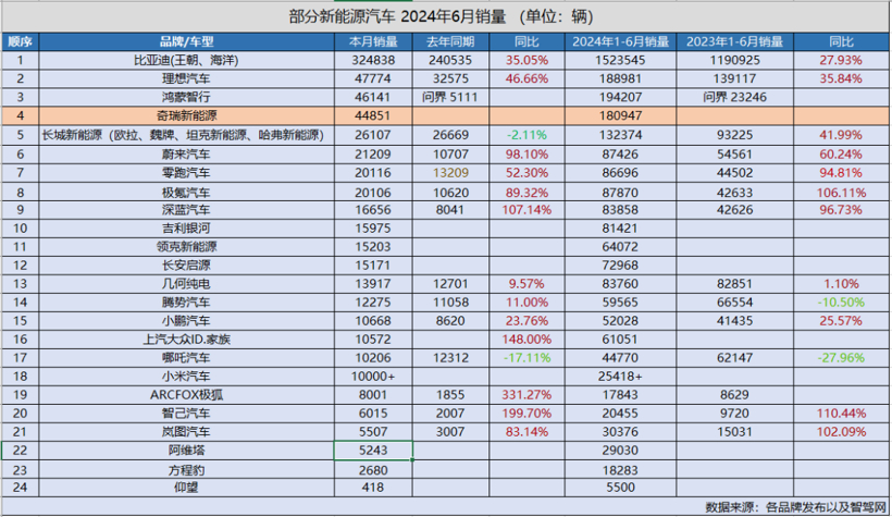 从奇瑞的四大乘用车品牌来看,6月业绩都相当不错。