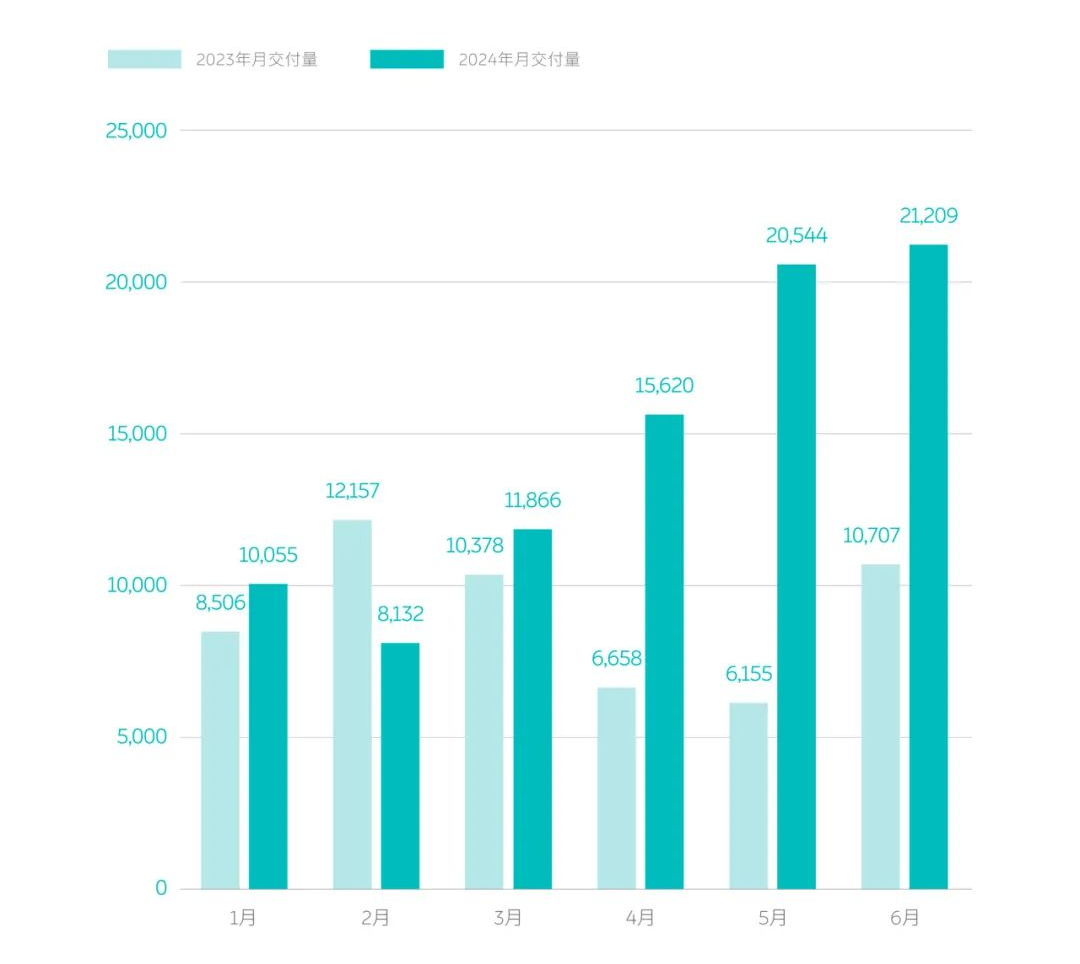 图为蔚来2024年1-6月销量数据;图源:蔚来汽车