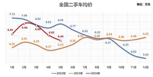 与此同时,二手车交易均价也有所提升,5月二手车交易均价为6.46万元,较去年同期增长0.23万元。