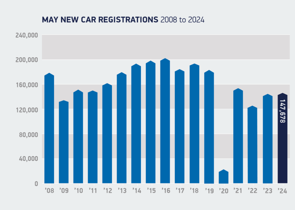 2008-2024年5月单月英国新车注册量;图片来源:SMMT