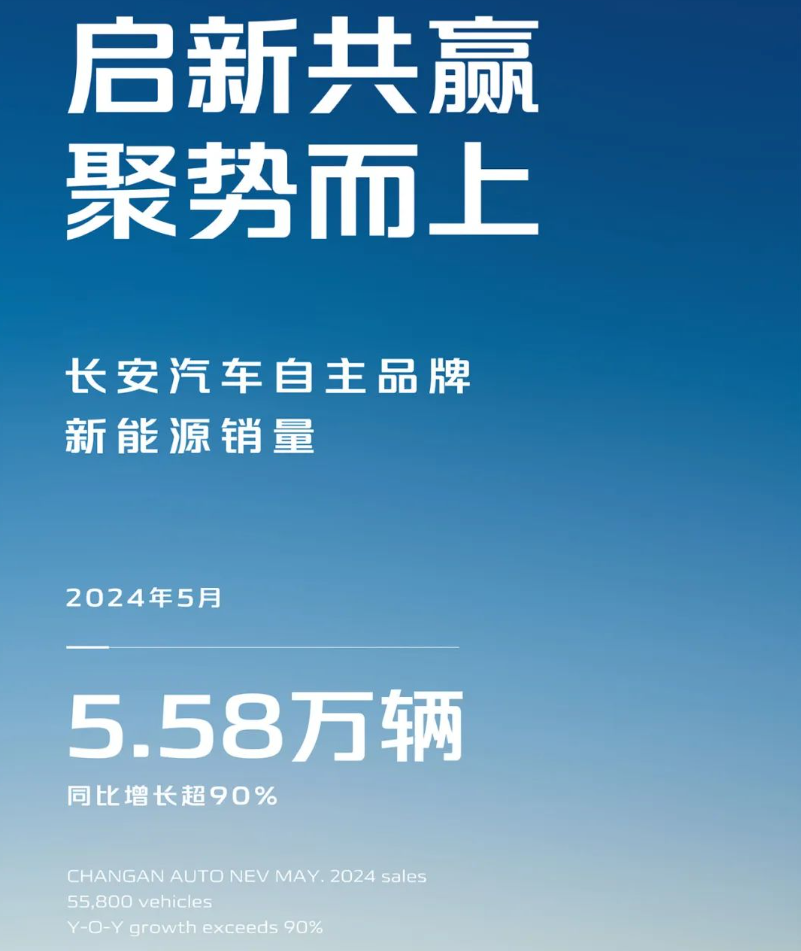 日前,长安汽车发布了2024年5月自主品牌新能源车最新销售情况。数据显示,5月,长安汽车自主新能源销量达到5.58万辆,同比增长超90%。2024年前5个月,长安汽车自主品牌新能源车累计销量已超过23.5万辆。