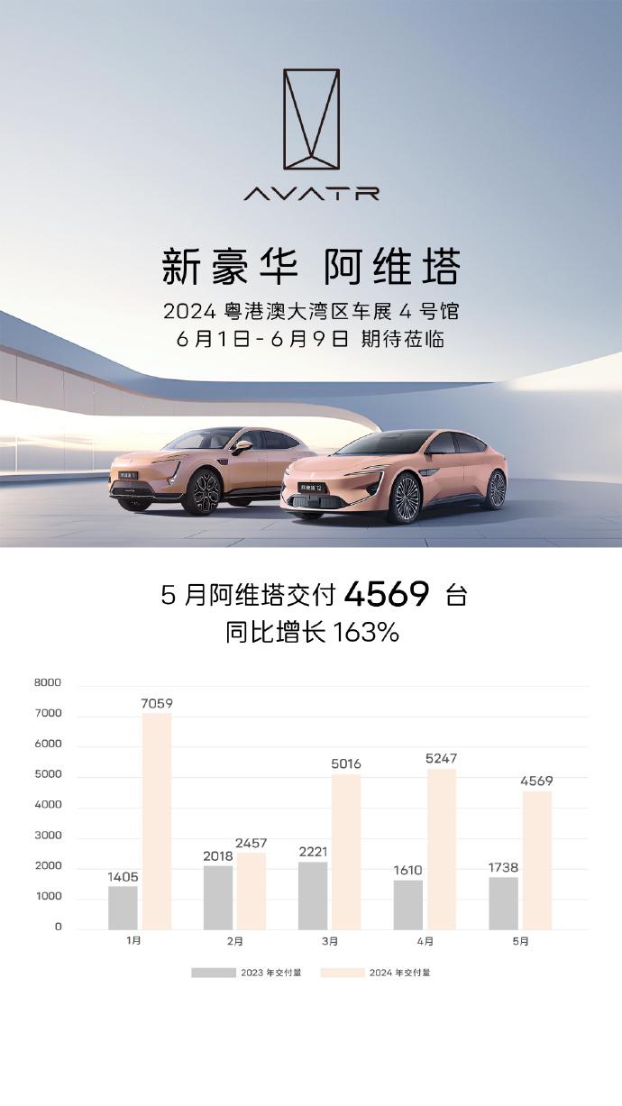 阿维塔5月交付4569辆,同比增长163%。不久前,阿维塔旗下双车型开启AVATR.OS 3.3.0版本OTA升级。
