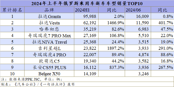 比如,在上半年品牌销量前十榜单中,俄罗斯本土的拉达以20.7万辆继续占据榜首的之位,另9个席位中的8个都是中国品牌,唯一的例外Belgee是白俄罗斯和吉利的合资品牌。