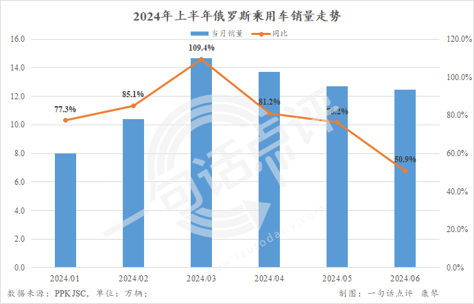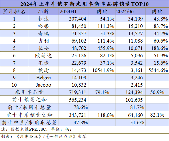 继2023年翻番两倍多至47%之后,今年上半年中国汽车在俄罗斯乘用车销量中的占比已经突破50%,超过俄系成为该市场份额最大的系别。