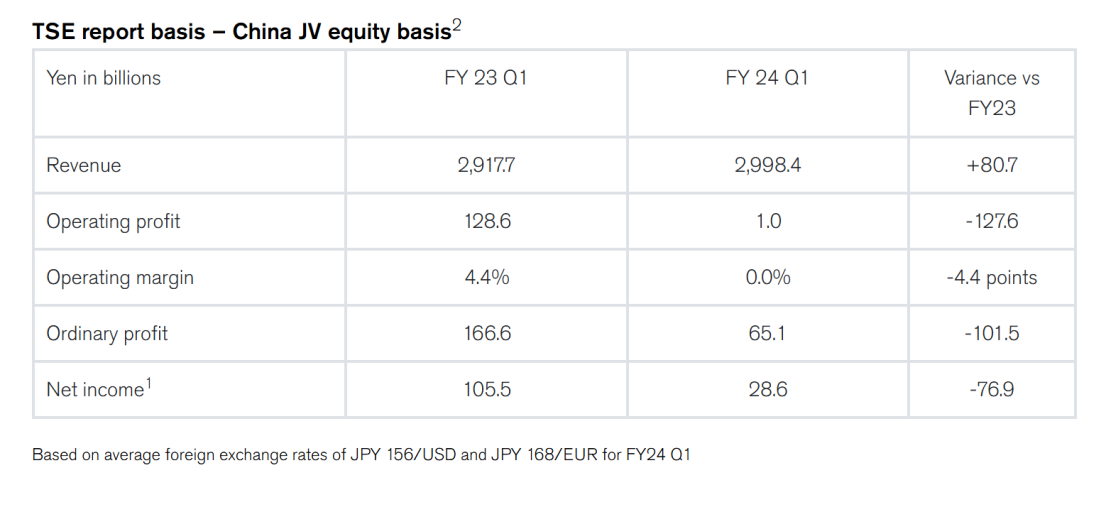 日产汽车今年4-6月业绩表现;图片来源:日产汽车