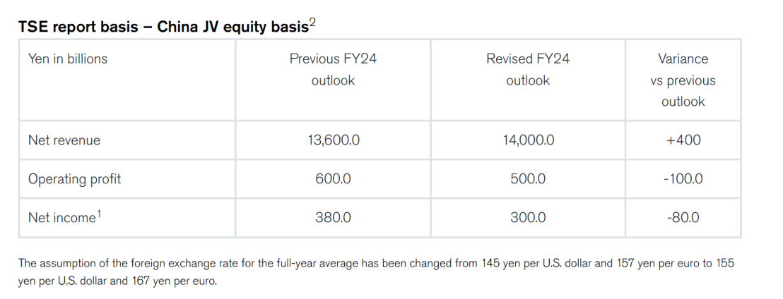 日产汽车全年预期调整前后对比;图片来源:日产汽车