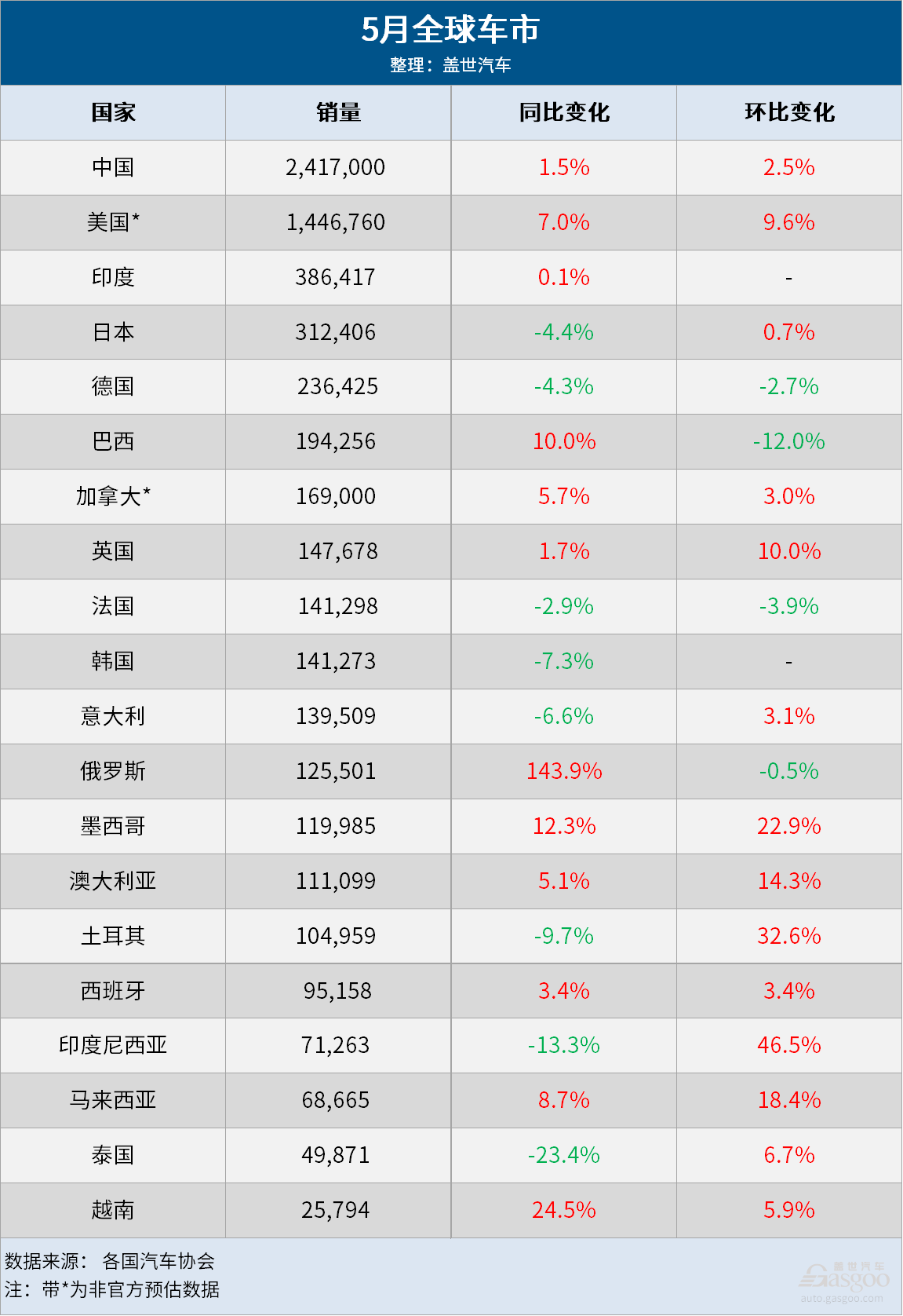 相关机构预计,2024年5月,全球轻型汽车销量为720万辆,同比仅增长1%,但年初至今的累计销量增长3.4%。当月,全球轻型汽车市场年销售速率达到8,800万辆,较4月略有改善。