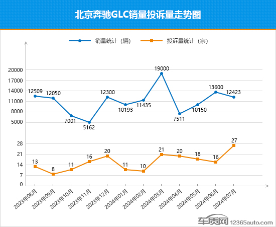 进入2024年,奔驰GLC的市场表现充满起伏,时好时坏。7月份,其销量再次出现环比回落,较6月份下降8.7%。与两款竞品车型奥迪Q5L和宝马X3相比,奔驰GLC在2024年的累计销量虽然依旧保持领先,但优势正在逐步缩小。反观其近一年来的月投诉表现,与销量走势相似,保持着反复冲高回落的趋势。7月份,奔驰GLC的投诉量出现大幅反弹,环比上涨68.8%,达到近一年来的最高点,口碑表现出现转差迹象。据车质网数据显示,奔驰GLC的故障问题主要集中在“发动机故障灯亮”和“制动异响”,厂家对于车主的诉求没有合理的解决方案,投诉解决率仅为个位数。从其7月份的投诉销量比数值变化来看,较6月份有明显提升,已达到近一年来的最高点,投诉销量比表现持续退步。近期,奔驰宣布退出“价格战”,热销车型的终端售价或将不再具有吸引力,加上口碑转差带来的负面影响,未来一段时间内的销量可能会再次探底。