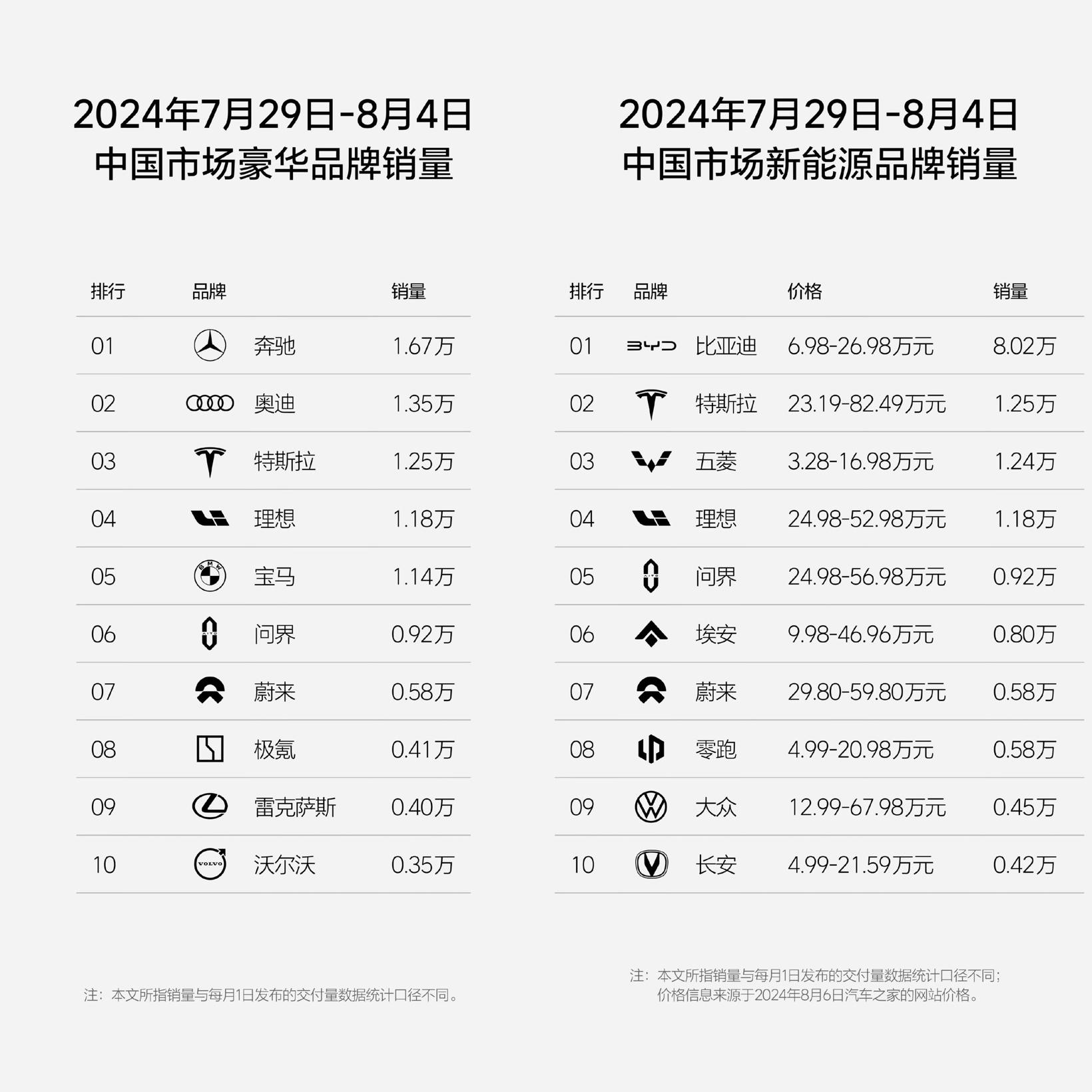 此外,小鹏汽车CEO何小鹏也表达了自己对销量周榜的反对态度。他在小鹏汽车AI智驾技术发布会上表示,自己在美国之行中“印象很深”的地方是,美国企业“更专注于”把端到端自动驾驶辅助技术做得更好,中国科技公司还在干“周销量榜”,在想办法赚钱而非技术创新和突破,“这不是科技竞争该有的样子。”
