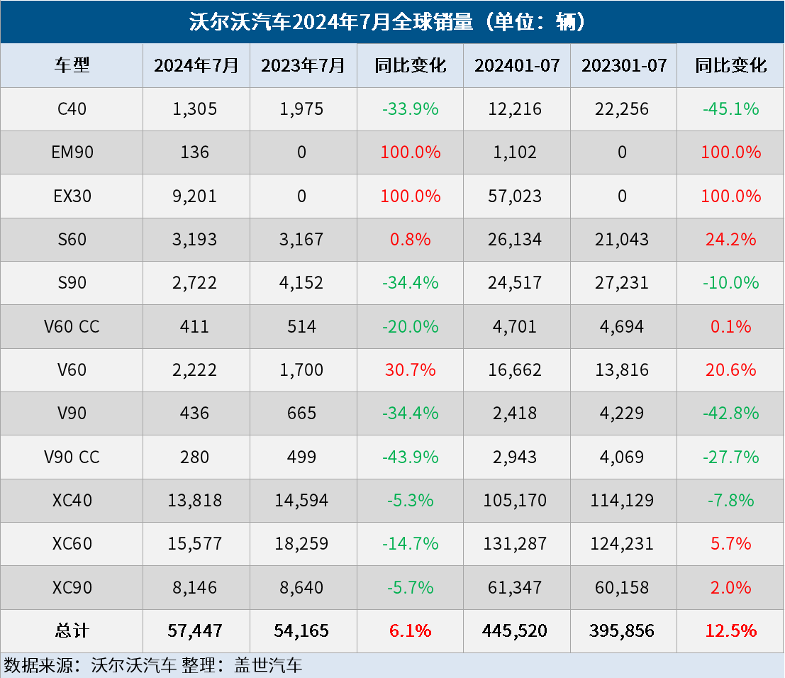 智行新篇讯 8月2日,瑞典汽车制造商沃尔沃汽车公布,由于其在欧洲纯电动汽车销量的增加,7月该公司全球销量同比增长6%,达到57,447辆。