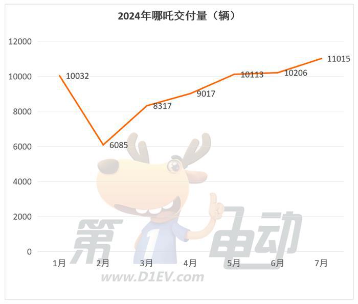 7月哪吒共交付11,015台,环比增长8%,今年1-7月累计销量64,785辆。旗下紧凑型SUV哪吒X在海外双国上市,其中泰国72小时订单突破1000台。