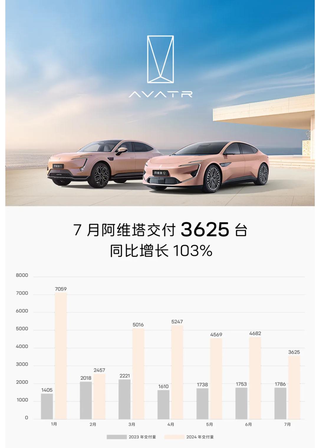阿维塔汽车7月交付3625台,同比增长103%8月2日,阿维塔公布了7月交付数据。上个月,阿维塔交付3625台,同比增长103%;至此,今年1-7月,累计交付32,宁德时代...