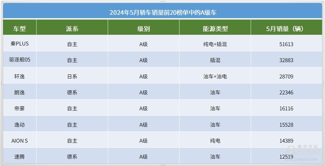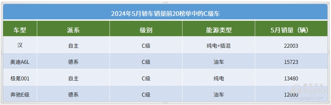 5月进入轿车销量前20榜单的C级车一共有4款,其中两款是自主新能源车,不知不觉间,自主的高端轿车,也已经成长为细分市场上有“势力”的一方了。