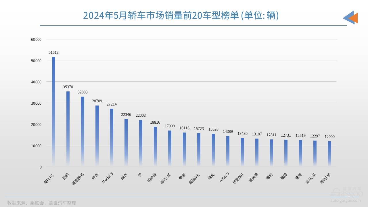 具体来看,5月的轿车市场上,自主新能源的强势地位依旧明显,5月轿车销量前三名,全都是比亚迪旗下产品,此外,比亚迪汉、海豹以及AION S,极氪001等自主新能源车,也都进入到轿车销量前20榜单。燃油轿车市场上,虽然自主车企的份额也在提升,但以大众汽车为首的外资品牌,地位依旧超然。5月国内燃油轿车市场上,南北大众处在绝对领跑的位置上,月销量都在4万辆以上,东风日产依靠轩逸等产品,在油车市场上也还一战之力,5月售出了接近3.7万辆燃油轿车。