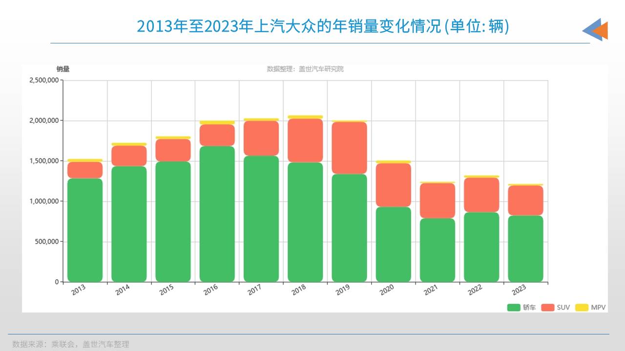 上汽大众、上汽通用等,此前都是年销200万辆级的“巨无霸型”车企,但最近两年,上汽大众和上汽通用的市场份额,都丢的很快。2023年上汽大众的年销量已经降至121.5万辆,上汽通用的情况还要更加严峻,2023年的年销量只有100万辆出头。
