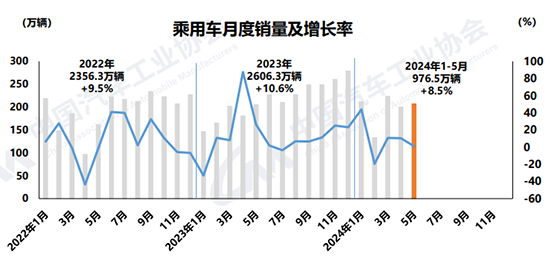 5月,我国汽车产销分别完成237.2万辆和241.7万辆,同比分别增长1.7%和1.5%。中汽协副秘书长陈士华表示,我国经济总体产出继续扩张,企业生产经营活动保持恢复发展态势;加之近期汽车市场利好政策不断,充分释放消费潜力,5月汽车产销同比实现小幅增长。