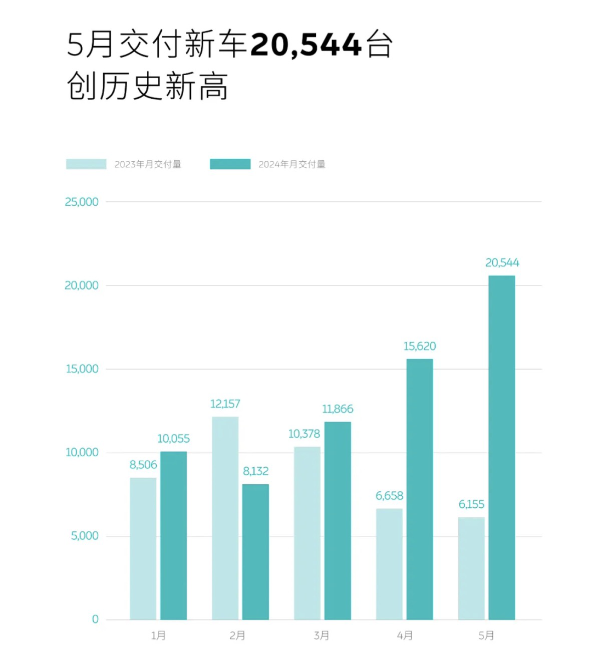 6月1日,蔚来汽车披露2024年5月交付数据,创历史新高。