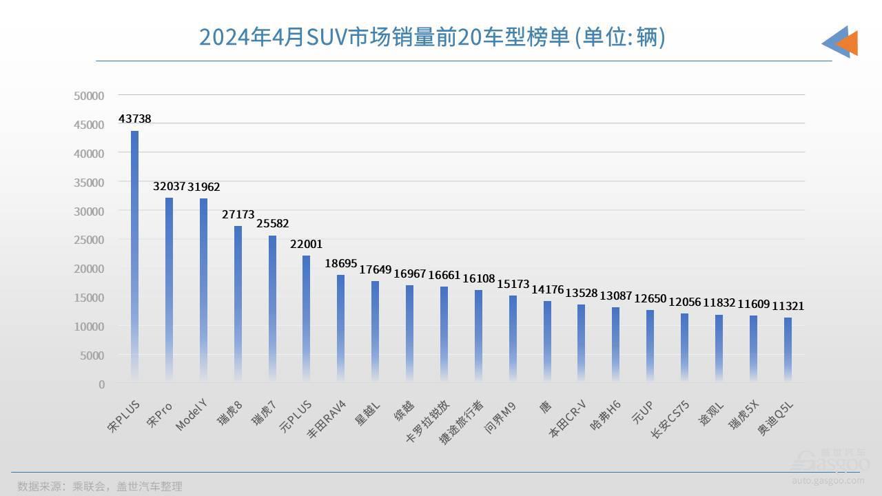 从SUV市场的畅销车型看,比亚迪表现依旧强势,SUV月度销量前20榜单中,有5款都是比亚迪旗下产品,宋PLUS和宋PRO还分别拿下了销量冠亚军,3月底才刚刚投放市场的新车元UP,市场热度也相当不俗,4月就实现了销量破万。奇瑞是4月国内SUV市场上另外一家表现抢眼的自主车企,4月奇瑞汽车旗下有4款车型,进入了销量前20榜单。
