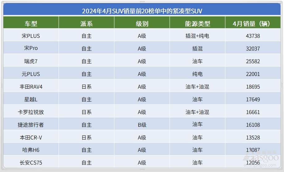 4月国内紧凑级SUV市场继续呈现出自主车型合力围剿合资产品的大格局。4月共有11款紧凑级SUV进入SUV月度销量前20榜单,其中8款都是自主车,月销量超过2万辆的4款紧凑级SUV,则全部都是自主产品。合资车型中,只有三款日系紧凑级SUV进榜。