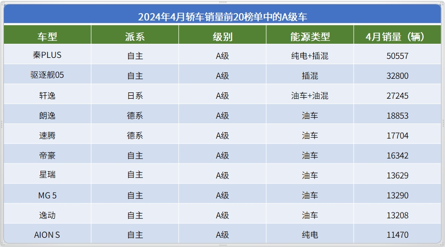 比亚迪旗下两个爆款车型之外,4月进入销量前20榜单的新能源车型还有一款——广汽埃安AION S。只不过,AION S的 4月销量只有万辆出头,与秦PLUS、驱逐舰05的市场差距还比较大。