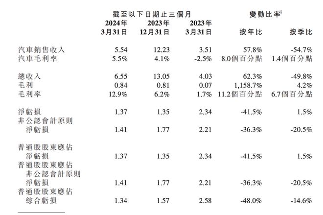 5月21日,小鹏汽车正式发布2024年第一季度财务报告。财报数据显示,一季度公司总营收达到65.5亿元人民币,相较于去年同期的40.3亿元实现了显著增长。尽管营收喜人,小鹏汽车一季度仍面临一定的财务压力,其净亏损为13.7亿元,调整后每股亏损为0.75元。值得注意的是,得益于与大众汽车的合作,小鹏汽车的毛利率终于达到了两位数。